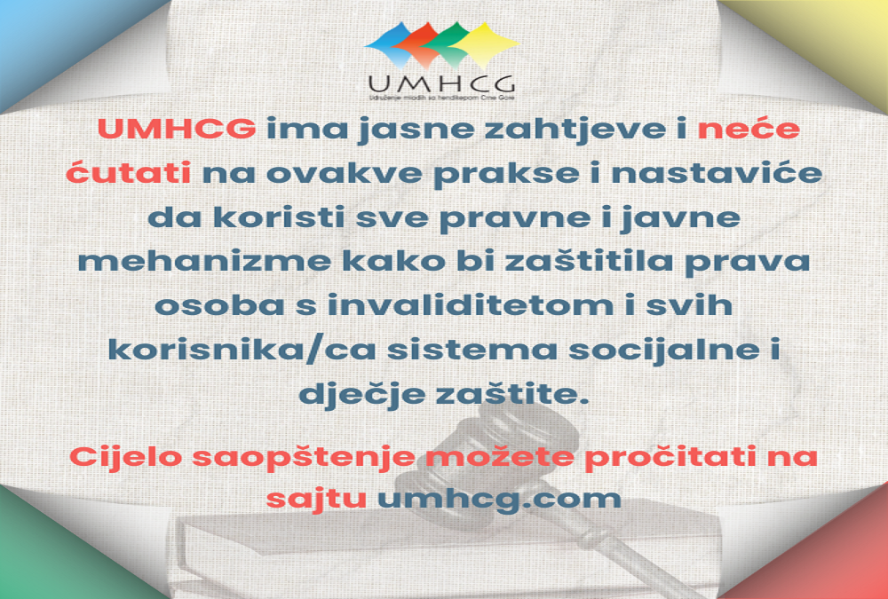 UMHCG neće ćutati na ovakve prakse i nastaviće da koristi sve pravne i javne mehanizme kako bi zaštitila prava osoba s invaliditetom i svih korisnika/ca sistema socijalne i dječje zaštite.