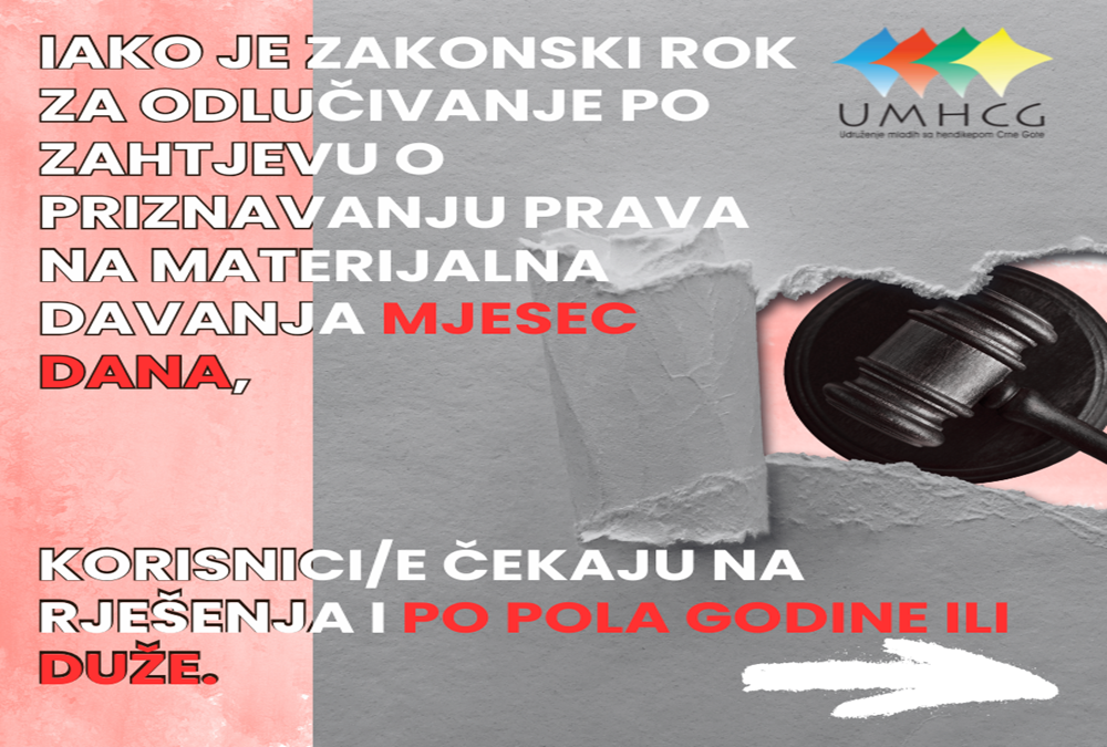Pozivamo sve koji nas prate da nam se obrate u slučaju da su zahtjev za ostvarivanje nekog od prava na materijalna davanja podnijeli prije više od mjesec dana, a Ministarstvo socijalnog staranja, brige o porodici i demografije da u najkraćem riješi navedeno pitanje.