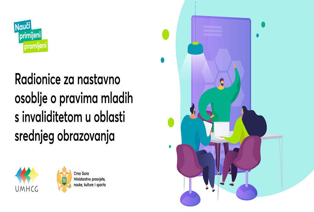 Udruženje mladih sa hendikepom Crne Gore (UMHCG) organizuje drugu dvodnevnu radionicu s nastavnim osobljem u Baru, 11. i 12. oktobra 2021, s početkom u 11.00 časova, u hotelu Franca.